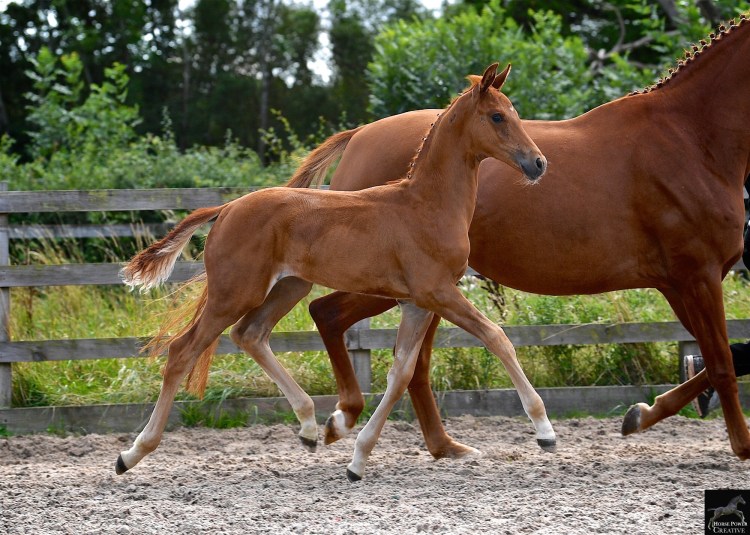 Sold 2019 Double Jeopardy (2019) (Double Bubble x Blue Hors Zack x Londonderry) a weanling Hanoverian chestnut colt out of Zsa Zsu, to make 16.3hh / 17hh. Bred by Beaumont Stud, Jed was awarded a gold premium at the British Breeders Futurity, scoring 9 for his walk. Jed was sold to a UK dressage home in the North of England in December 2019. We wish him, Jo and Andy all the best.